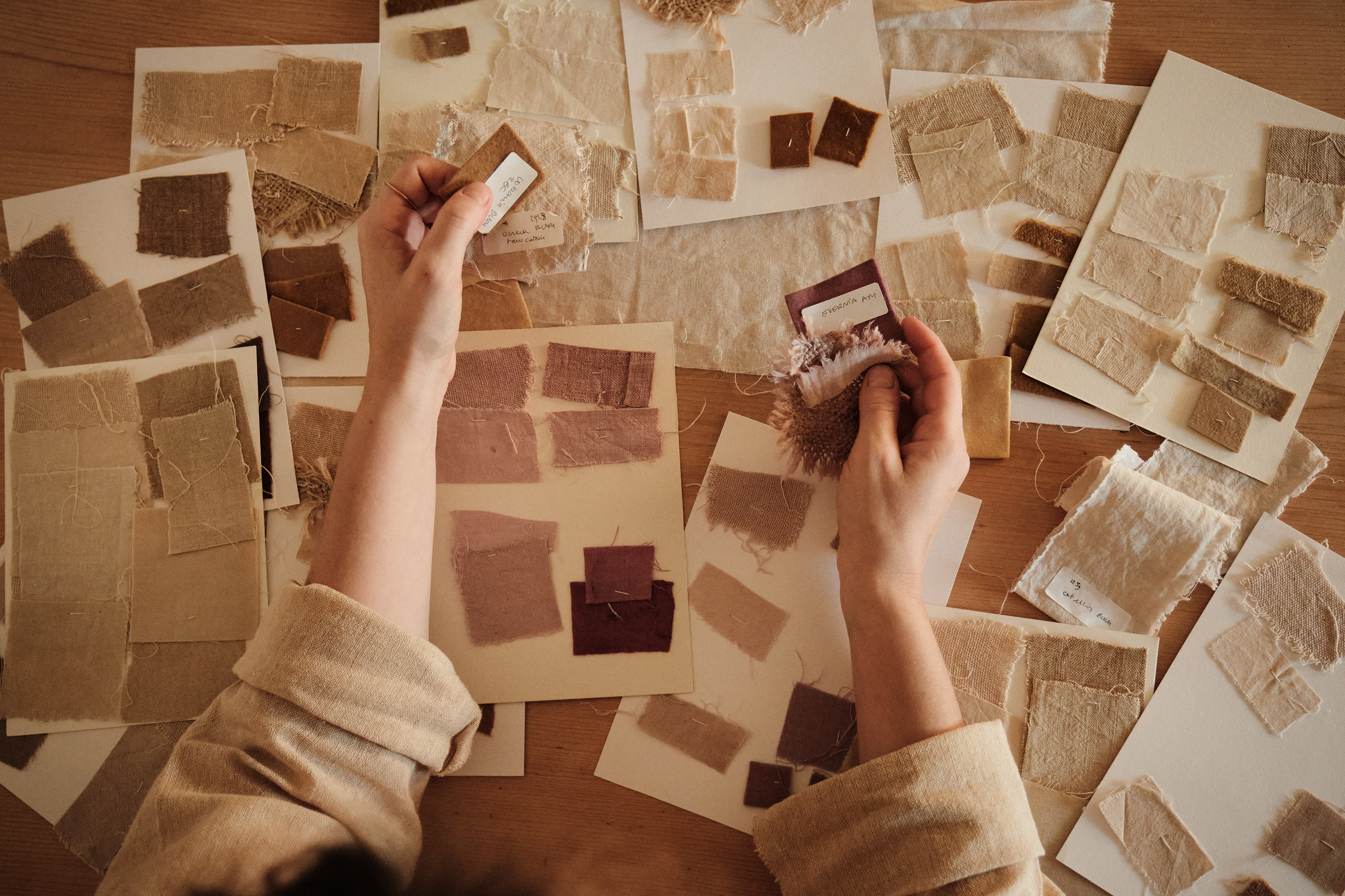 As the colour curator, I led the natural dyeing process, drawing from several weeks of botanical study in the high-altitude landscapes of Northeast Italy. With the support of local experts, I responsibly foraged lichens and explored their hidden dye potential, building a rich archive of colours - eventually transformed into a unique palette of textiles that made their way into the hands of the hatmakers.