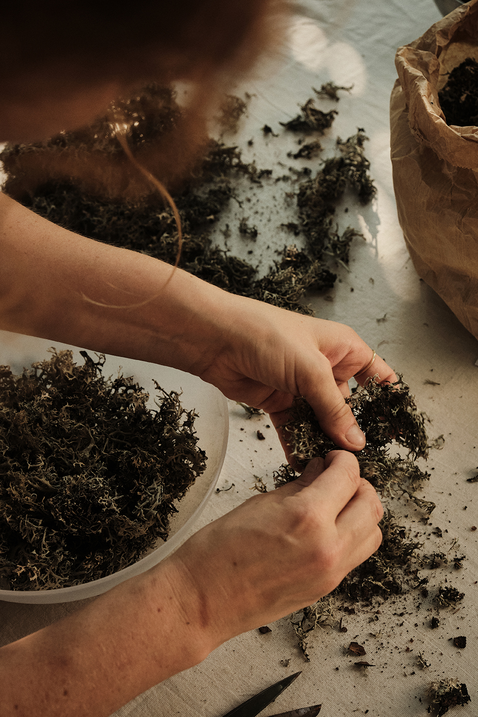 This journey, from fieldwork and color extraction to form and texture, is both artistic exploration and cultural storytelling. Each hat carries traces of the land, the hands, and the time that shaped it. Inspired by a shared passion for sustainability and craftsmanship, the project reimagines traditional techniques, experiments with innovative lichen dyes, and challenges the expectations of contemporary fashion.